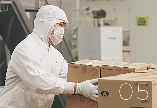 厳しいチェックをクリアしたラムネを1粒ずつ包装し、いろいろな味をミックスして梱包。大切に育てられたラムネは、こうしてみなさんのお手元へ届けられます。